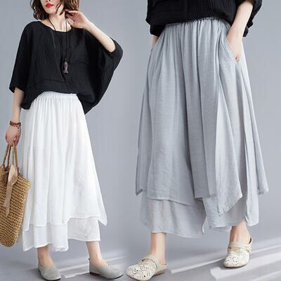 一見スカートにも見えるワイドシルエットのパンツ。
