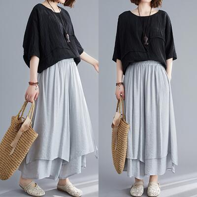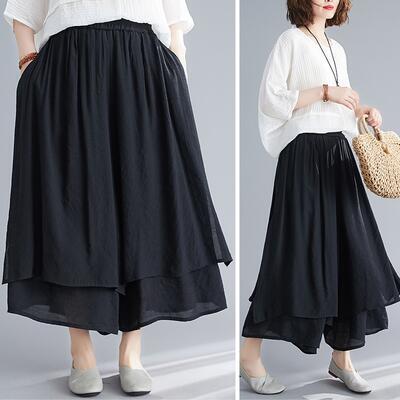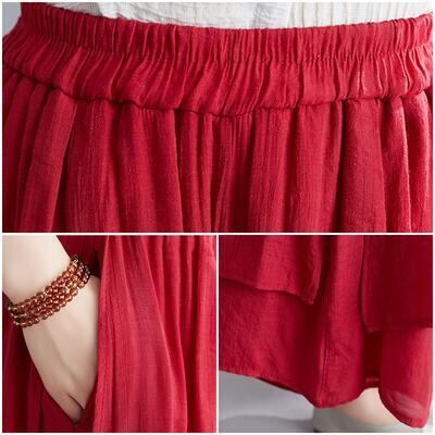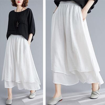 全4色 リネン 綿麻 ワイドパンツ レディース カジュアル パンツ フレア ボトムス ワイドレッグ ガウチョ ウエストゴム リラックス ゆったり 体型カバー シンプル ナチュラル ホワイト 白 レッド グレー ブラック 黒 春 夏 秋 20代 30代 40代 50代
