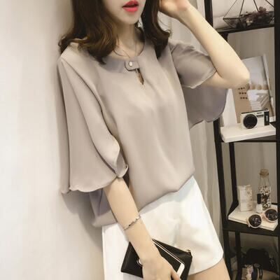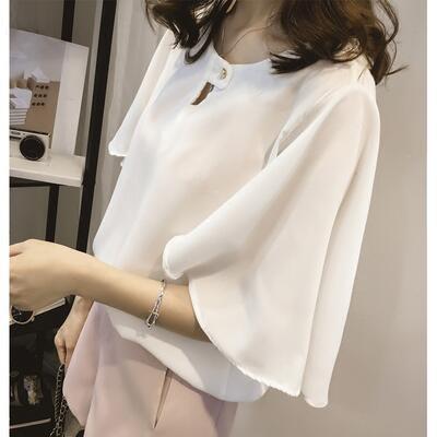 全3色 ナチュラル こなれ感 大きいサイズトップス レディース ブラウス とろみ感 シャツ きれいめ カジュアル 五分袖 フリルスリーブ おしゃれ 可愛い 薄手 涼しい クラシカル 春 夏 秋 ガーリー フェミニン エレガント ホワイト 白 グレー ピンク 20代 30代 40代 50代