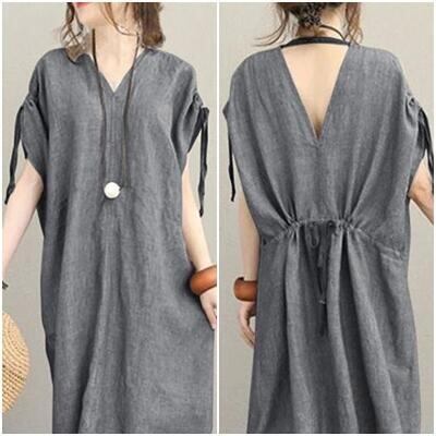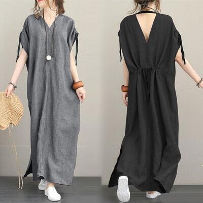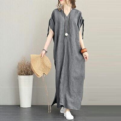 全2色 XL 2XL 3XL 大きいサイズ ワンピース リネン 麻 リネン混 半袖 カジュアル おしゃれ レディース 綿 ワンピ ドレス Aライン ゆったり 体型カバー こなれ感 春 夏 秋 ブラック 黒 グレー 20代 30代 40代 50代 お出かけ 薄手 涼しい ロング丈 フリーサイズ ラフ コーデ コットン