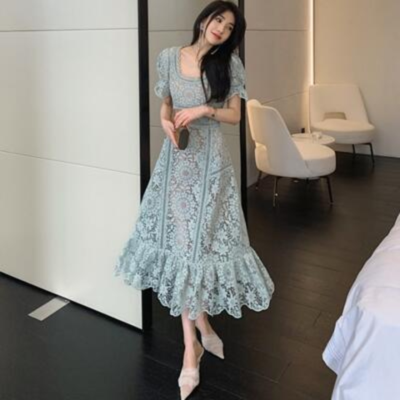 繊細なレースが上品さ溢れる総レースワンピース。