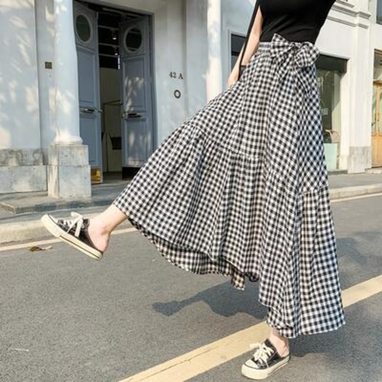 アシンメトリーのデザインがオシャレなギンガムチェックスカート。