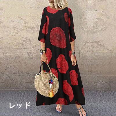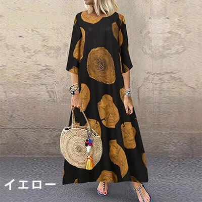全4色 七分袖 ゆったり Aライン 大きいサイズ 体型カバーロングワンピース レディース きれいめ カジュアル 袖あり ロング丈 ワンピース かっこいい ナチュラル 大人 ドレス リゾート ワンピ ホワイト 白 イエロー 黄色 レッド 赤 ブラック 黒 春 夏 秋 韓国 コーデ 10代 20代 30代 40代 50代