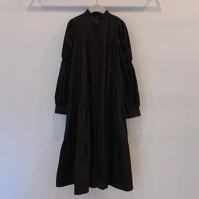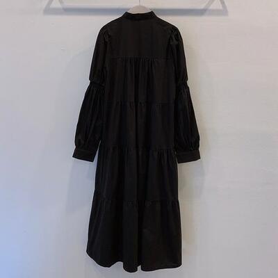 ハイネックがクラシカルな雰囲気のティアードシャツワンピース。