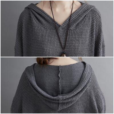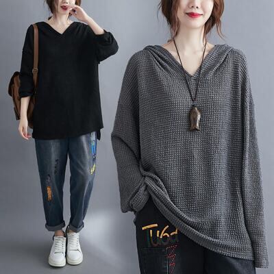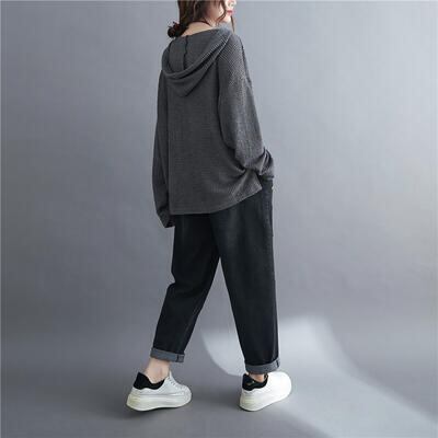全2色 トップス レディース Tシャツ パーカー カットソー カジュアル 長袖 ワッフル おしゃれ フード付き フェミニン 可愛い かっこいい プルオーバー フーディー ゆったり 体型カバー シンプル グレー ブラック 黒 春 夏 秋 20代 30代 40代 50代