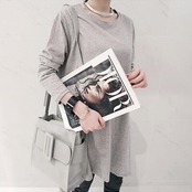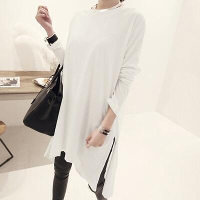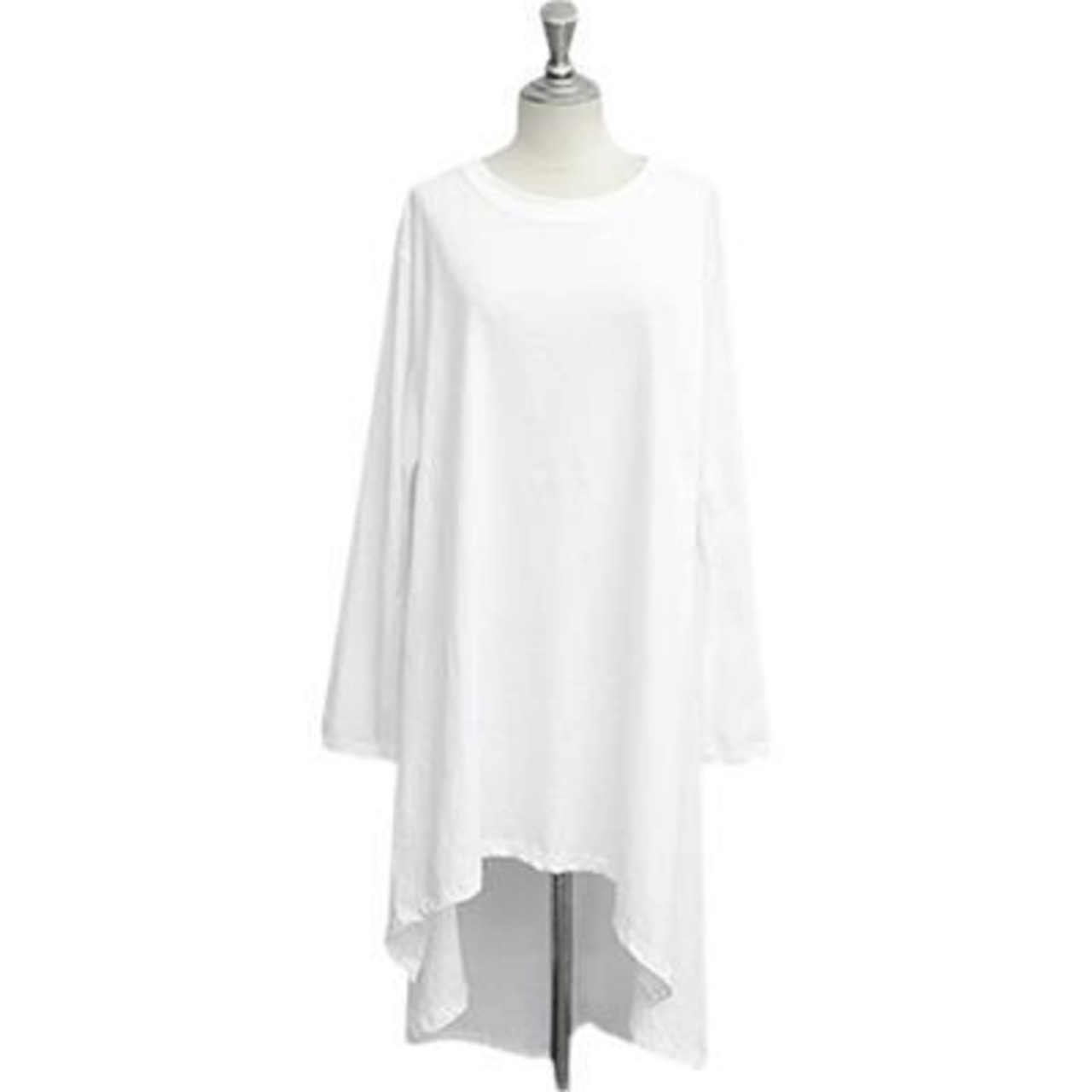 全2色 大きいサイズ トップス レディース Tシャツ カジュアル 長袖 チュニック ロング丈 おしゃれ 可愛い かっこいい ワンピース ロンT シンプル 抜け感 ナチュラル こなれ感 ベーシック ゆったり 体型カバー グレー ホワイト 白 春 夏 秋 20代 30代 40代 50代
