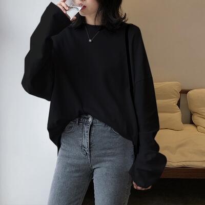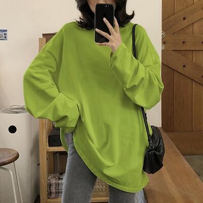 全3色 大きいサイズ オーバーサイズ ゆったり 体型カバートップス レディース カジュアル Tシャツ 長袖 クルーネック おしゃれ 可愛い かっこいい シンプル カットソー 抜け感 ビッグシルエット ブラック 黒 グリーン ホワイト 白 春 夏 秋 20代 30代 40代 50代