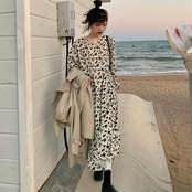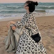 落ち着いたシックな雰囲気の小花柄ワンピース。