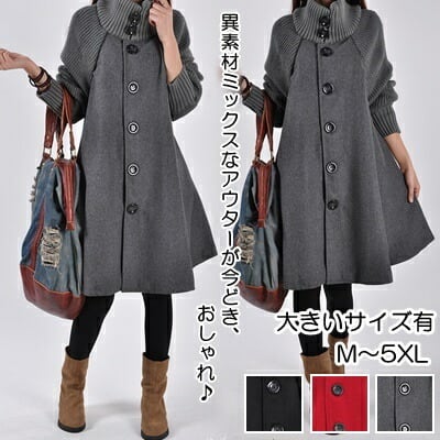 全3色 シングル ハイカラー秋コート レディース コート ミセス アウター 秋 可愛い ウール リブ おしゃれ シンプル ベーシック 長袖 かっこいい きれいめ カジュアル ゆったり 体型カバー こなれ感 ベージュ 春 夏 秋 20代 30代 40代 50代 ボタン ミドル丈 レッド ブラック 黒 グレー