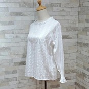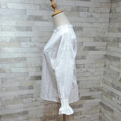 花柄の刺繍とボリューム袖がキュートな印象のブラウス。