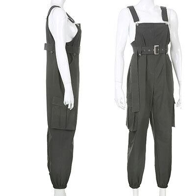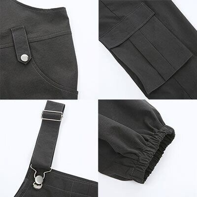 サロペット オールインワン グレー ロング丈 スリム ゆったり 体型カバー 太ももカバー 春 夏 秋 冬 オールシーズン 韓国 コーデ ミリタリー スポーティー おしゃれ 10代 20代 30代 40代 50代