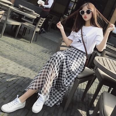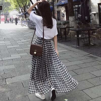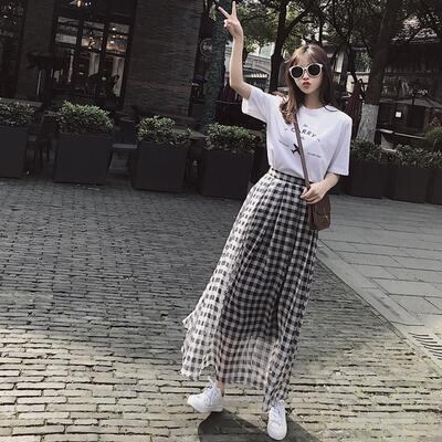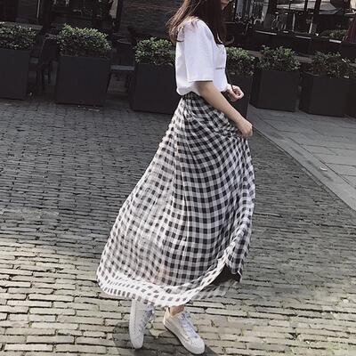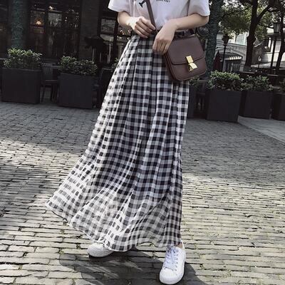 スカート レディース ギンガムチェック きれいめ おしゃれ 可愛い ロング丈 カジュアル Aライン ナチュラル エレガント フレア フェミニン 着痩せ 透け感 大きいサイズ シフォン ブラック 黒 ホワイト 白 春 夏 秋 20代 30代 40代 50代