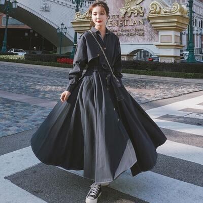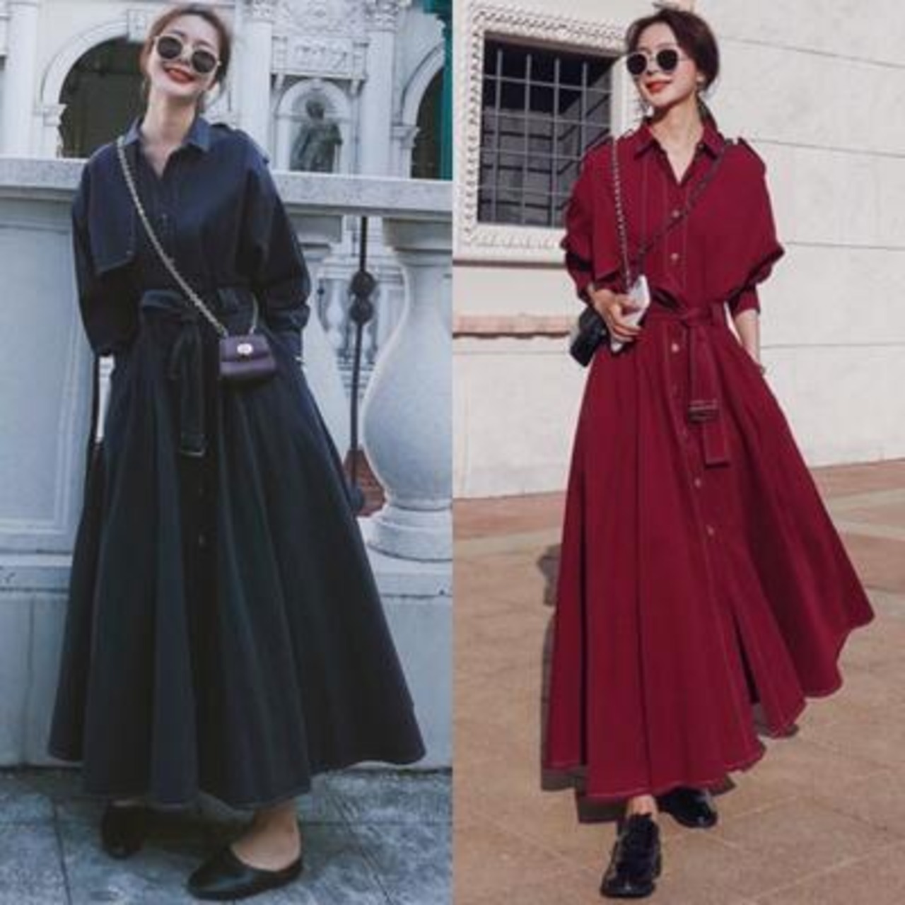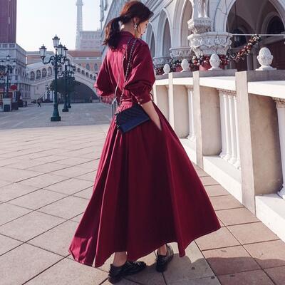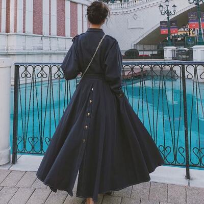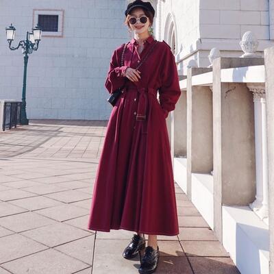 全2色 きれいめ カジュアル クラシカル大きいサイズ レディース コート ロングコート ロング丈 可愛い トレンチコート ジャケット おしゃれ ワンピース ヴィンテージ 長袖 かっこいい エレガント ウエストリボン 体型カバー こなれ感 ネイビー レッド 春 秋 冬 20代 30代 40代 50代