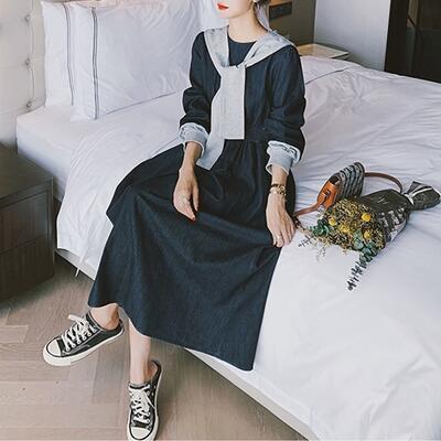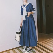 取り外し可能なセーラーカラーが可愛いデニムワンピース。