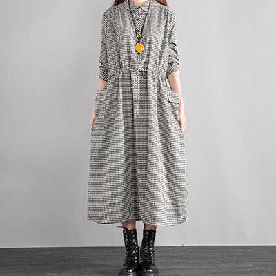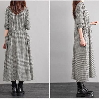 ロングワンピース レディース きれいめ カジュアル 袖あり ワンピース ミモレ丈 ひざ下 ドレス ブラック 黒 チェック 長袖 ゆったり 体型カバー 春 夏 秋 韓国 コーデ ガーリー レトロ ナチュラル 10代 20代 30代 40代 50代