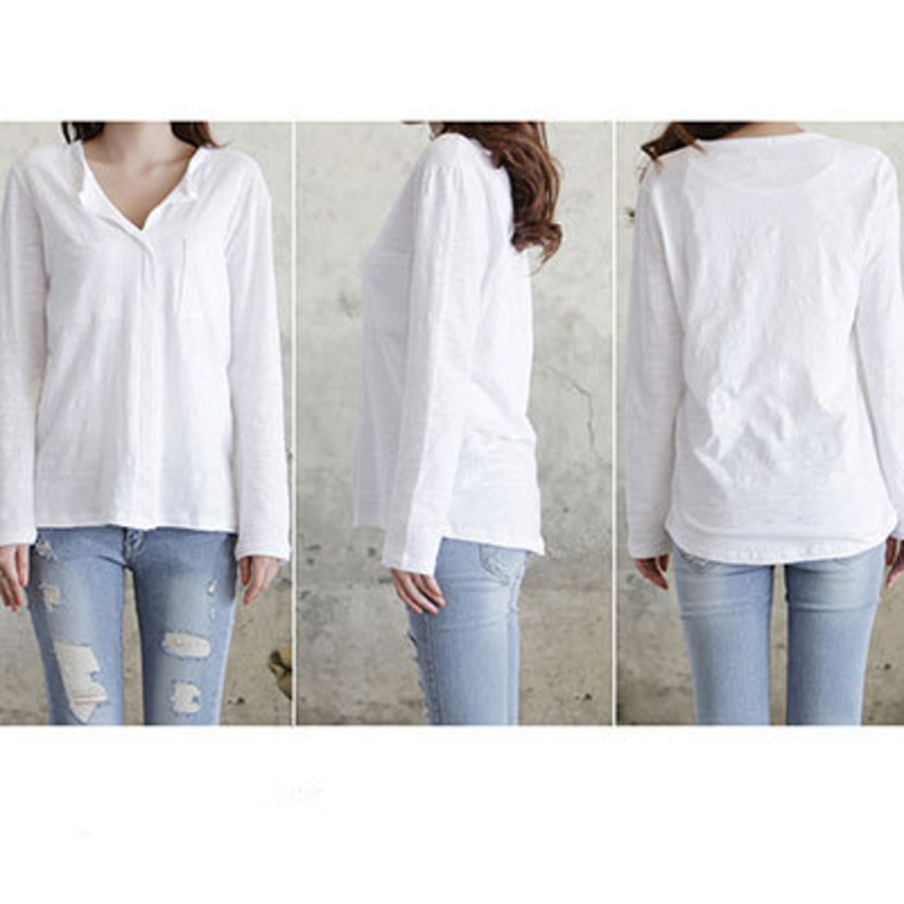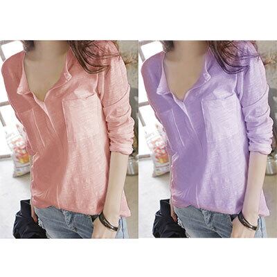 全6色 トップス レディース 袖あり ブラウス きれいめ シャツ おしゃれ 無地 シンプル カジュアル Vネック 長袖 白 ホワイト 黒 ブラック グレー 黄色 イエロー 紫 パープル ピンク ゆったり 大きいサイズ 通勤 春 夏 秋 20代 30代 40代 50代