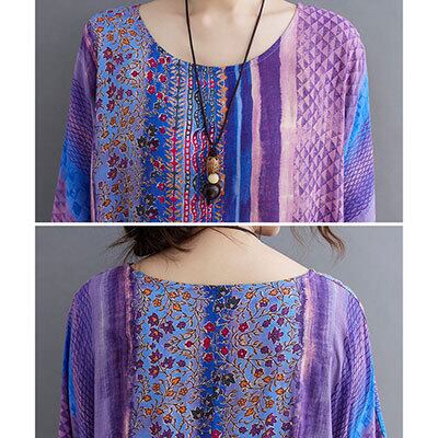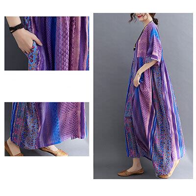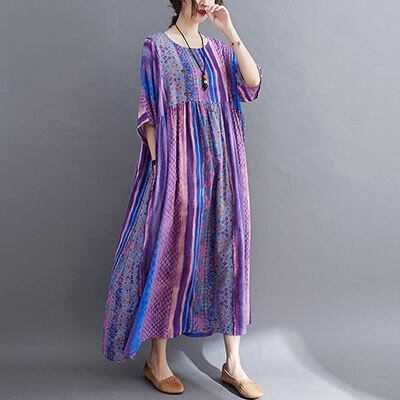ロングワンピース レディース きれいめ カジュアル 袖あり ロング丈 ワンピース 大人 ドレス ラウンドネック リゾート ワンピ 花柄 五分袖 ゆったり Aライン 大きいサイズ 春 夏 秋 韓国 コーデ 薄手 涼しい エスニック ナチュラル 20代 30代 40代 50代