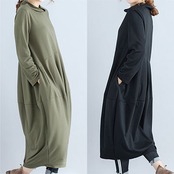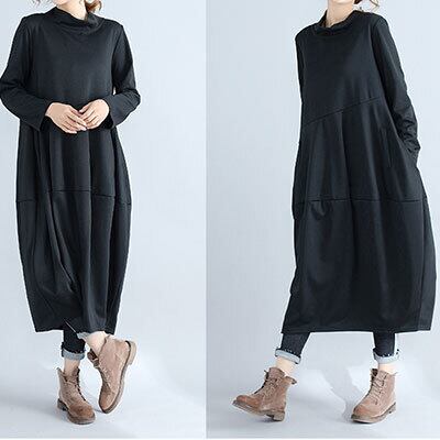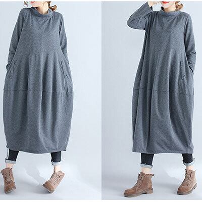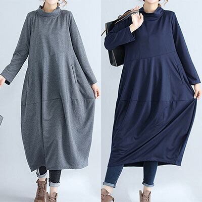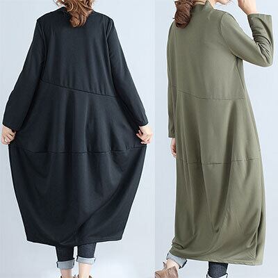 全4色 ロングワンピース レディース カジュアル ロング丈 きれいめ ブラック 黒 ネイビー 紺 グレー グリーン 緑 ワンピ 長袖 スタンドカラー ドレス 春 秋 冬 おしゃれ 上品 韓国 コーデ ナチュラル ゆったり 大きいサイズ かわいい 10代 20代 30代 40代 50代