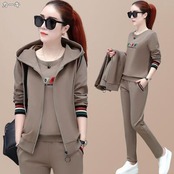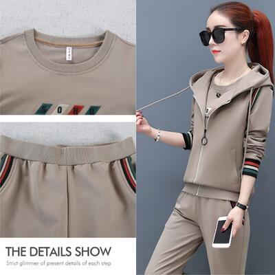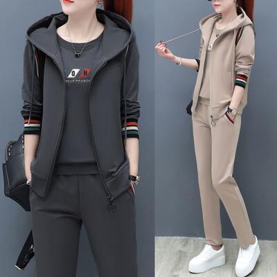 全4色 大きいサイズセットアップ 3点セット トップス パンツ ジャケット ベスト レディース 長袖 ロングパンツ ノースリーブ カジュアル ジャージ スポーティ フード スリム かっこいい リラックス グレー ブラック 黒 ベージュ カーキ 春 秋 冬 20代 30代 40代 50代