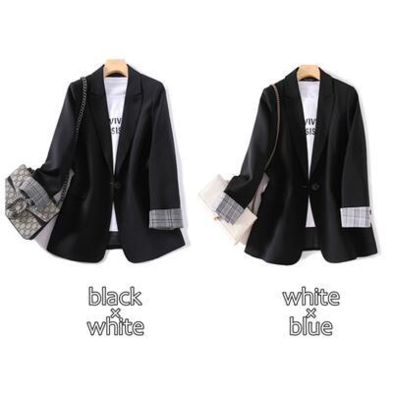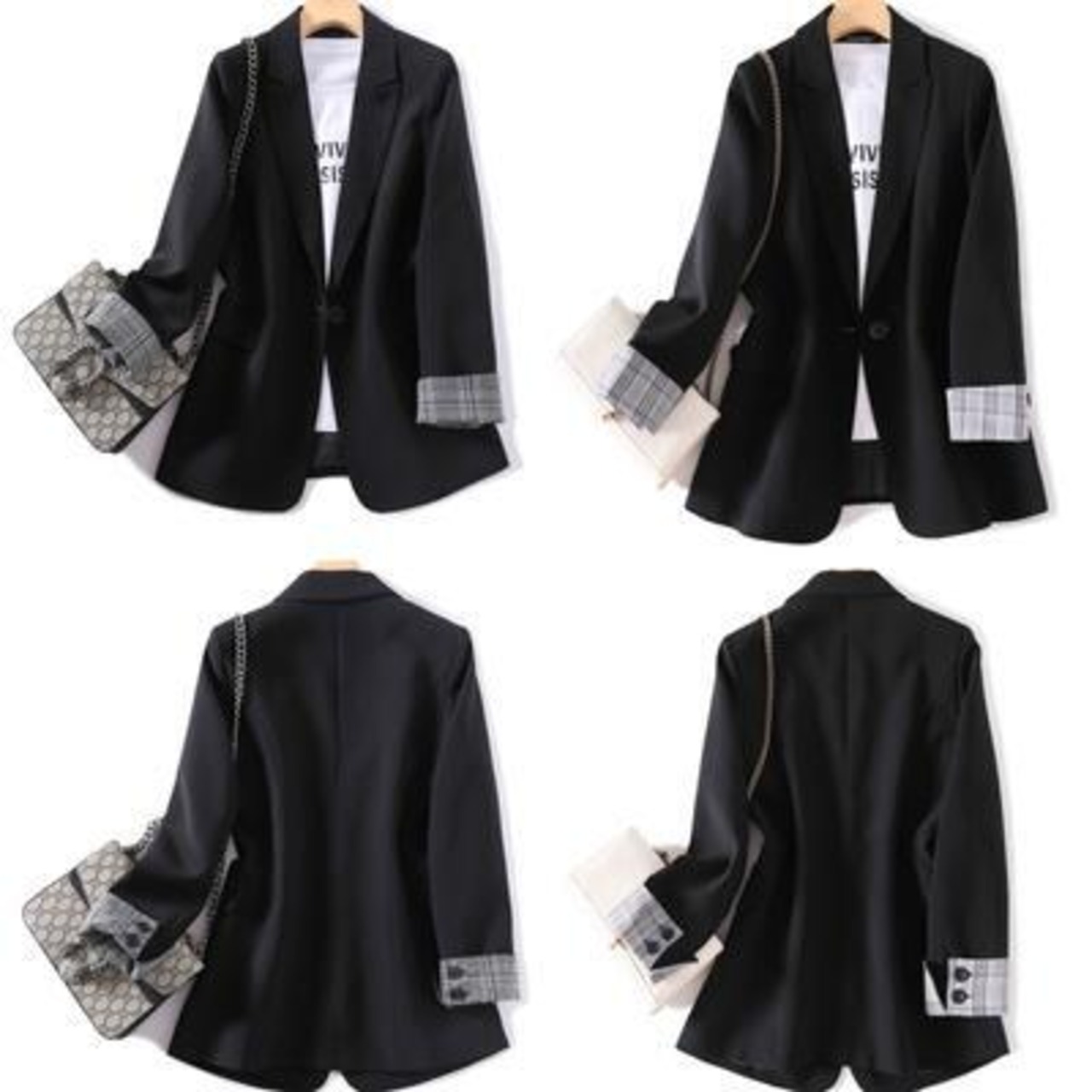 全2色 秋コート アウター レディース ジャケット テーラードジャケット おしゃれ 長袖 チェック かっこいい エレガント きれいめ カジュアル マニッシュ シンプル ワンボタン オフィス 上品 きちんと感 大きいサイズ ブラック 黒 春 秋 冬 20代 30代 40代 50代