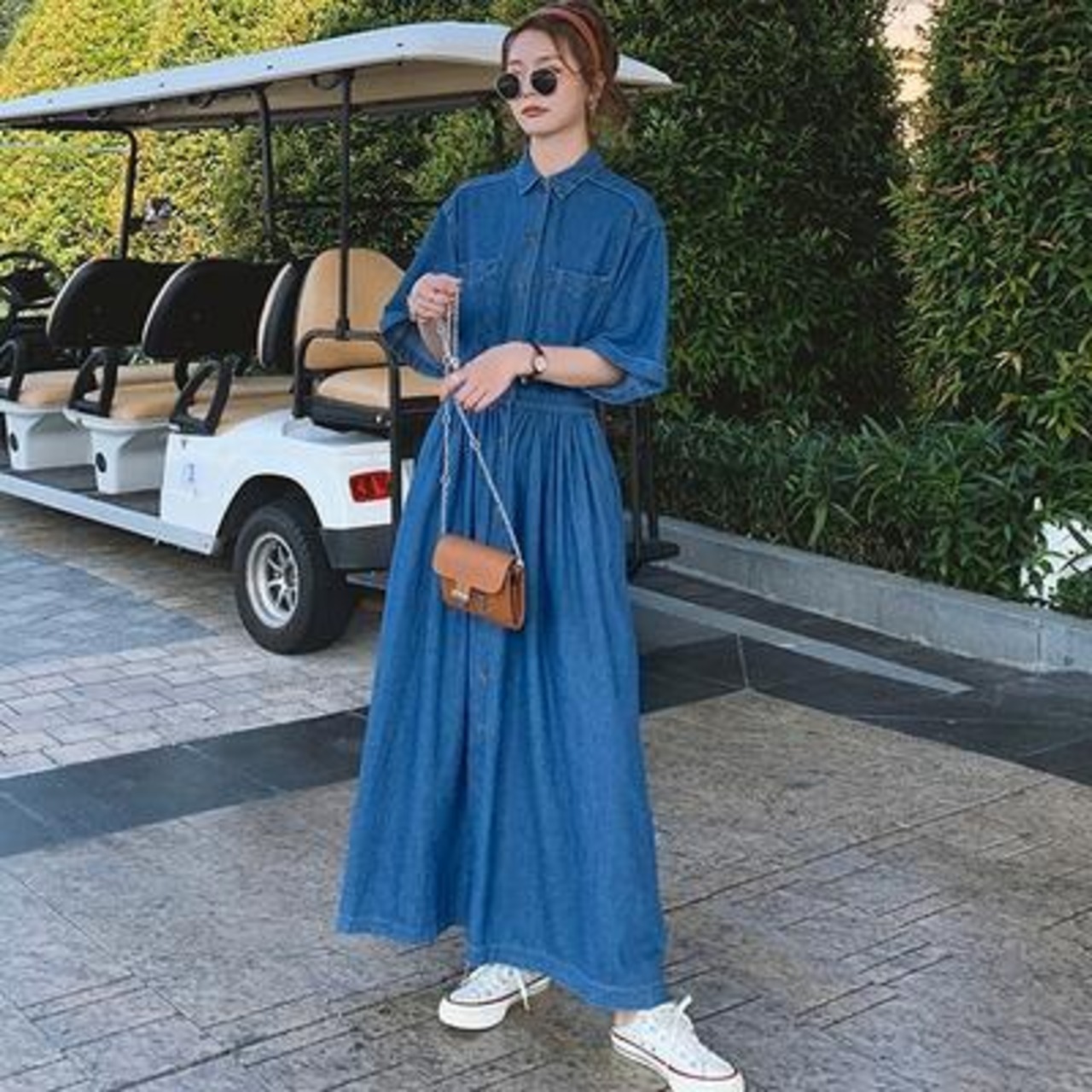 シンプルに一枚で着映えるデニムシャツワンピース。