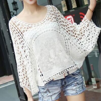 透かし編みが可愛いニットトップス。
