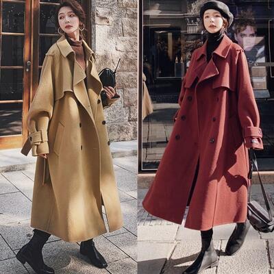 全2色 大きいサイズ秋コート アウター レディース コート 可愛い トレンチ チェスター ジャケット おしゃれ 長袖 かっこいい エレガント きれいめ カジュアル ゆったり ウエストベルト ビッグシルエット シンプル 体型カバー こなれ感 カーキ レッド 春 秋 冬 20代 30代 40代 50代