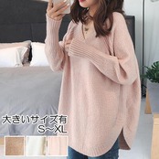 全3色 大人可愛い トップス レディース 秋冬 カジュアル きれいめ 長袖 オーバーサイズ ルーズニット 防寒 あったか 秋冬 フェミニン プルオーバー オルチャン 韓国 ブラウン アイボリー ピンク 大きいサイズ XL 20代 30代 40代 50代