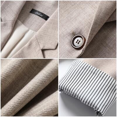 全3色 大きいサイズ 秋コート アウター レディース テーラード ジャケット コート おしゃれ 長袖 かっこいい ストライプ エレガント きれいめ カジュアル フェミニン シンプル オフィス スーツ ベーシック 羽織 マニッシュ ブラック 黒 グレー アプリコット 春 秋 冬 20代 30代 40代 50代
