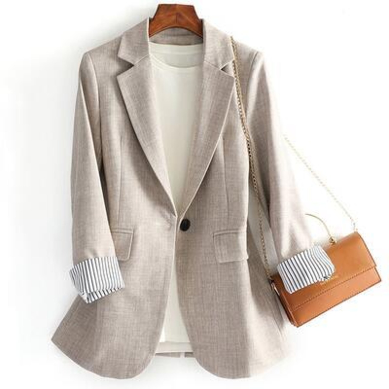 袖口の裏地にストライプ柄をあしらったこなれ感のあるデザイン。