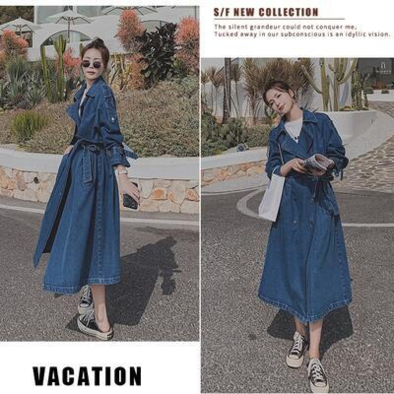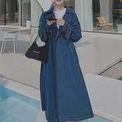 デニム素材のカジュアルなトレンチコート。