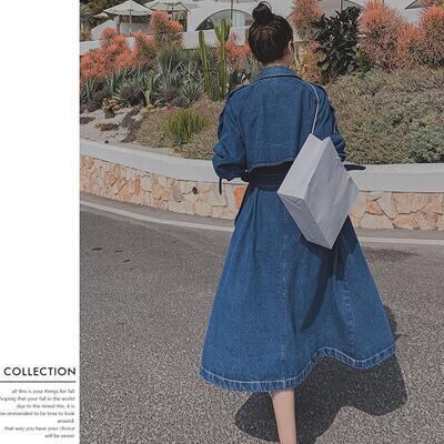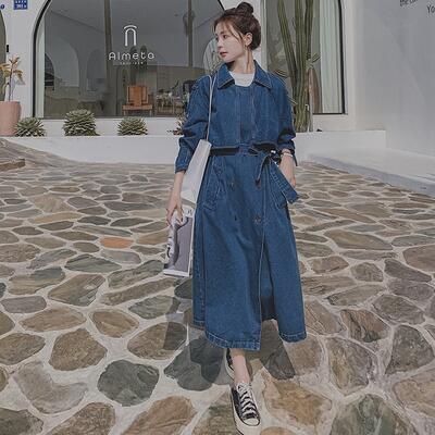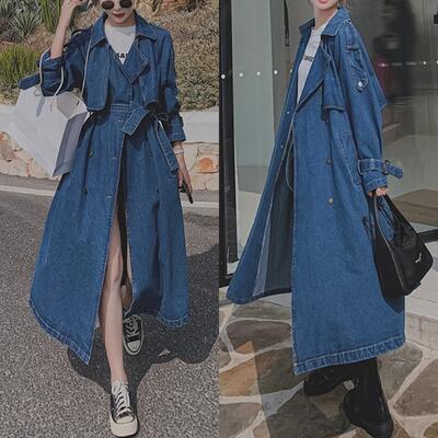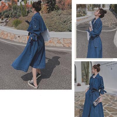 秋コート アウター レディース デニム トレンチコート 可愛い ジャケット おしゃれ 長袖 ロング丈 エレガント きれいめ カジュアル コート フェミニン シンプル ベーシック Aライン 羽織 大きいサイズ ブルー 春 秋 冬 20代 30代 40代 50代