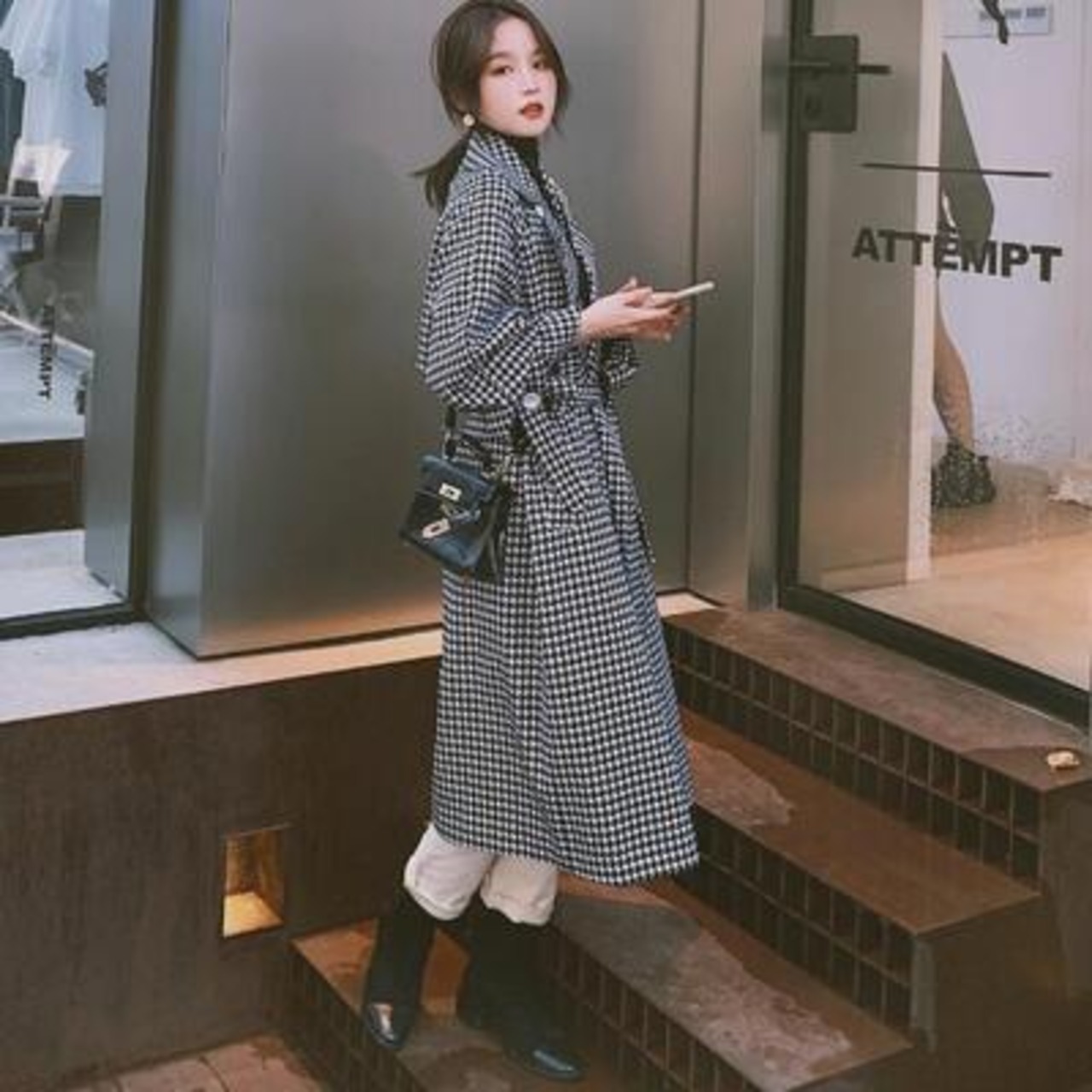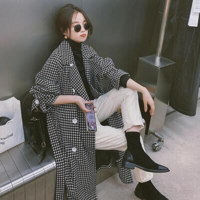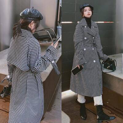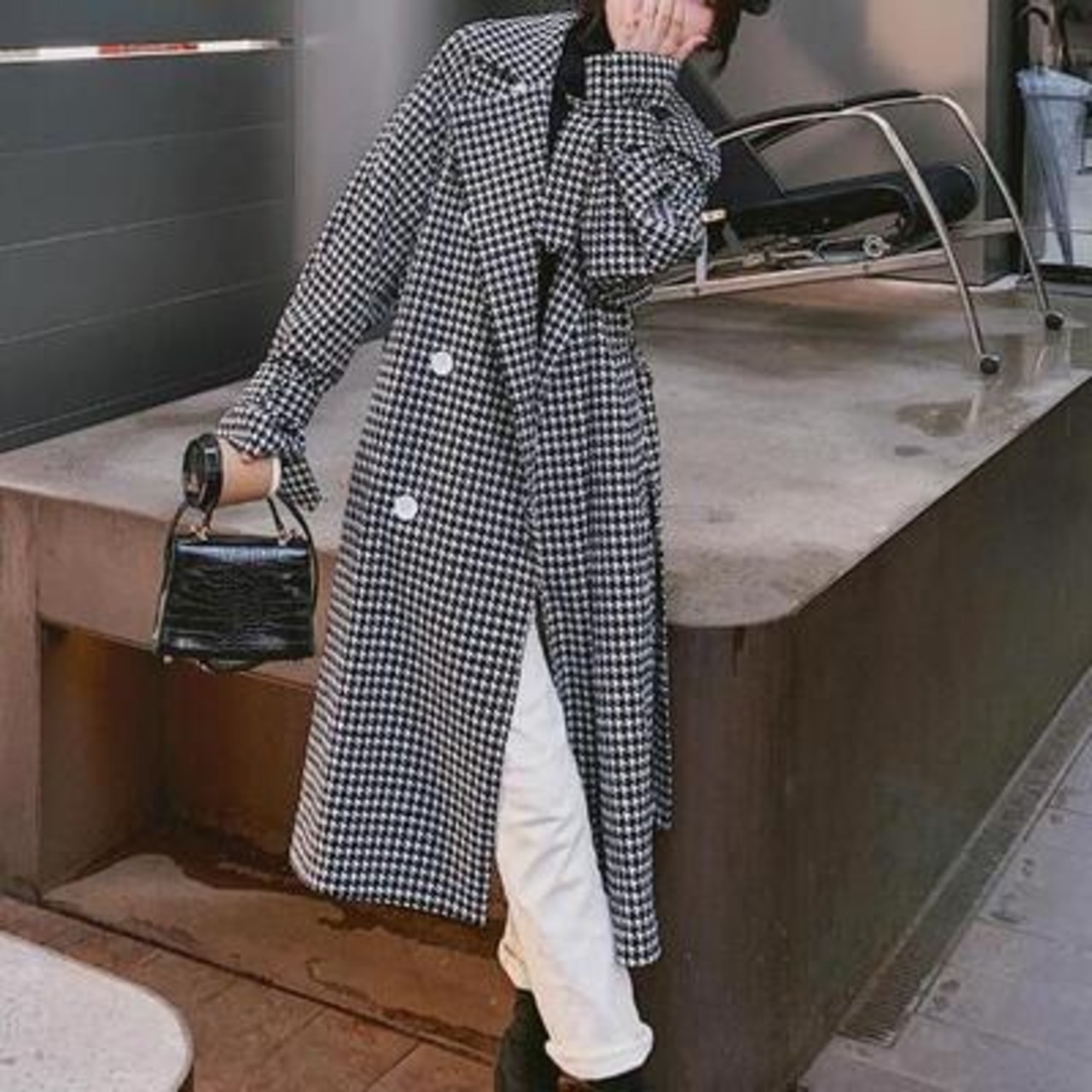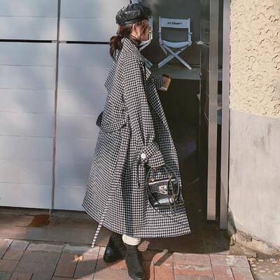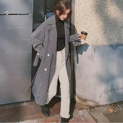 千鳥格子柄が大人かわいいロングコート。