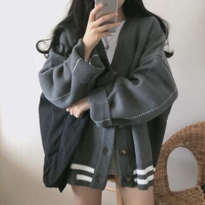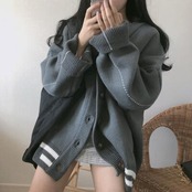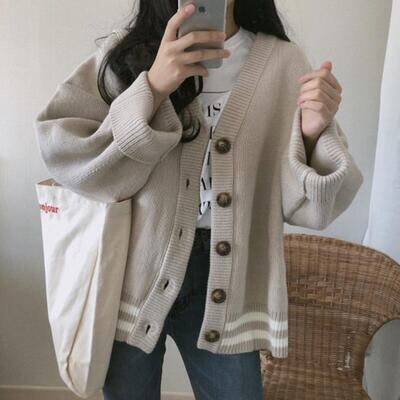 全2色 秋 トップス レディース カーディガン アウター ニット セーター カジュアル ジャケット 長袖 羽織 おしゃれ 可愛い フェミニン スポーティ ライン ルーズ ゆったり 体型カバー ベージュ グレー 春 秋 冬 20代 30代 40代 50代