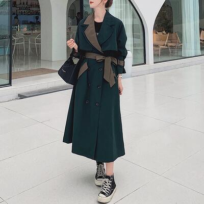 大きいサイズ かっこいい 秋コート アウター レディース コート トレンチコート ジャケット きれいめ カジュアル 長袖 羽織 バイカラー おしゃれ 可愛い エレガント フェミニン ゆったり 体型カバー 抜け感 シンプル オフィス グリーン 春 秋 冬 20代 30代 40代 50代
