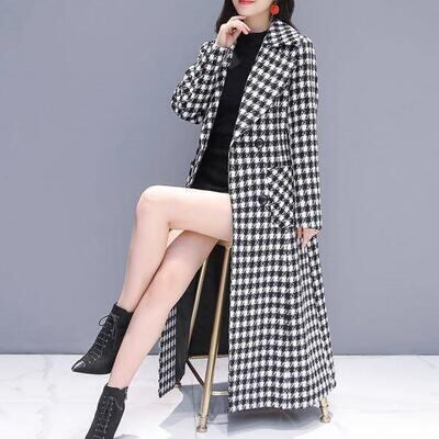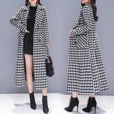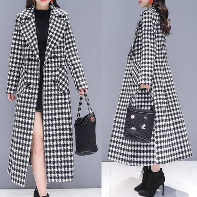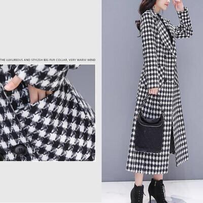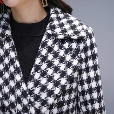上品でクラシカルな印象の千鳥格子柄ロングコート。