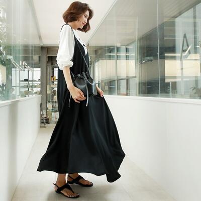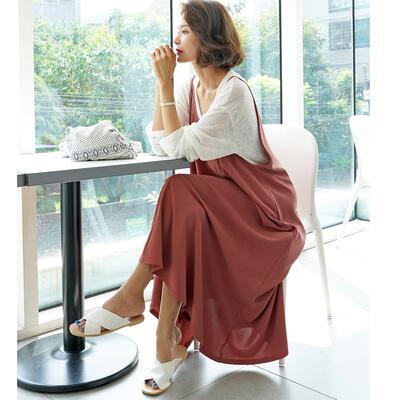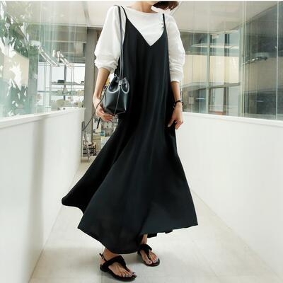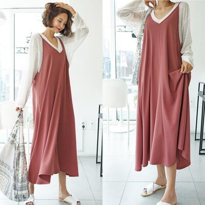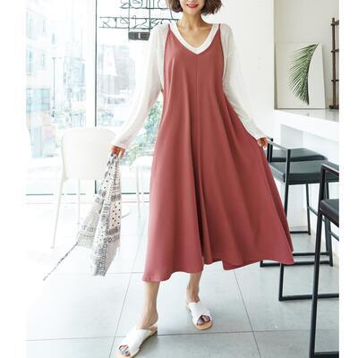 全2色 ワンピース エレガント カジュアル ミモレ丈 キャミワンピース おしゃれ レディース 可愛い フェミニン ワンピ ドレス ゆったり シンプル ナチュラル ブラック 黒 レッド 赤 オールシーズン 春 秋 夏 20代 30代 40代 50代