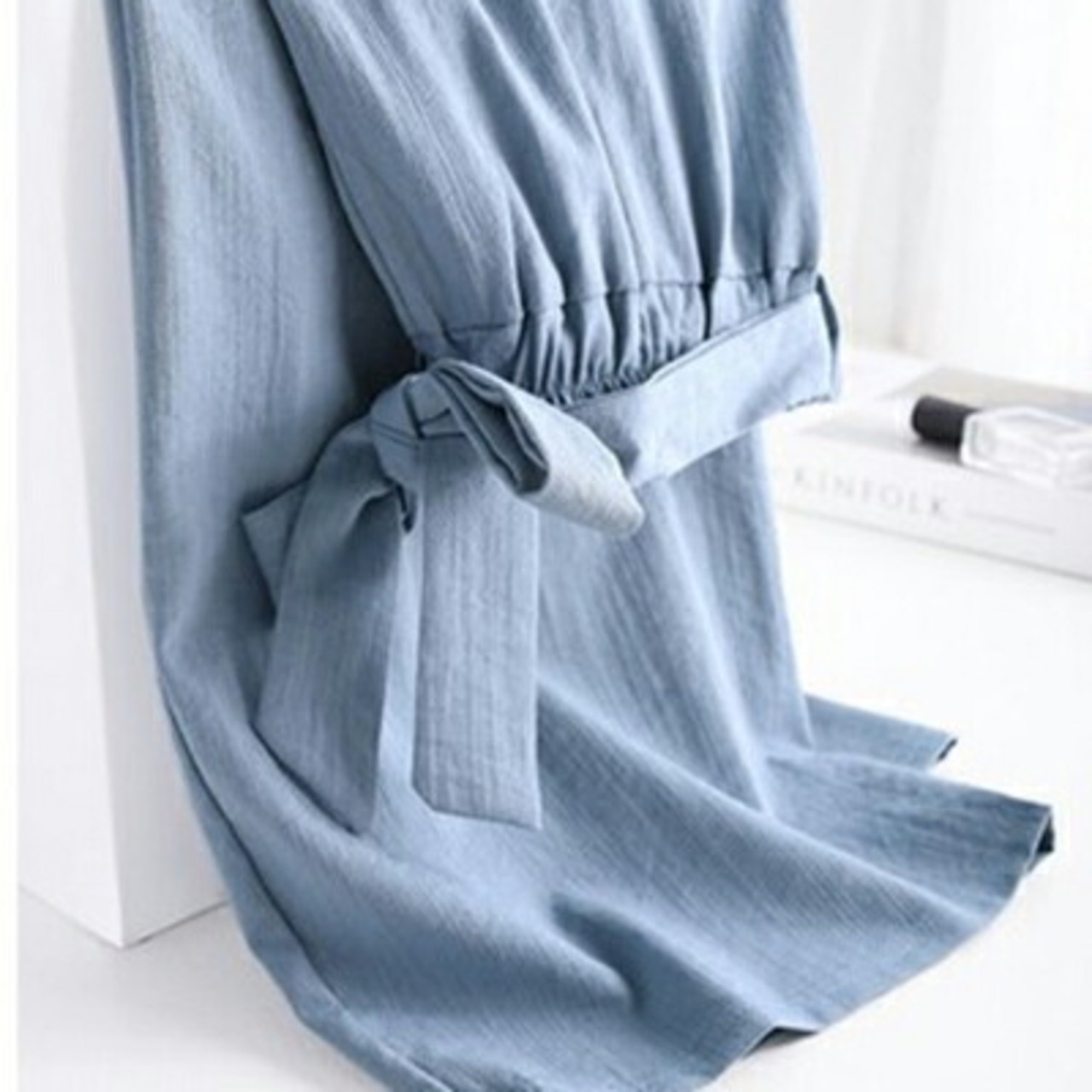 ウエストのリボンベルトで多少のサイズ調整が可能です。