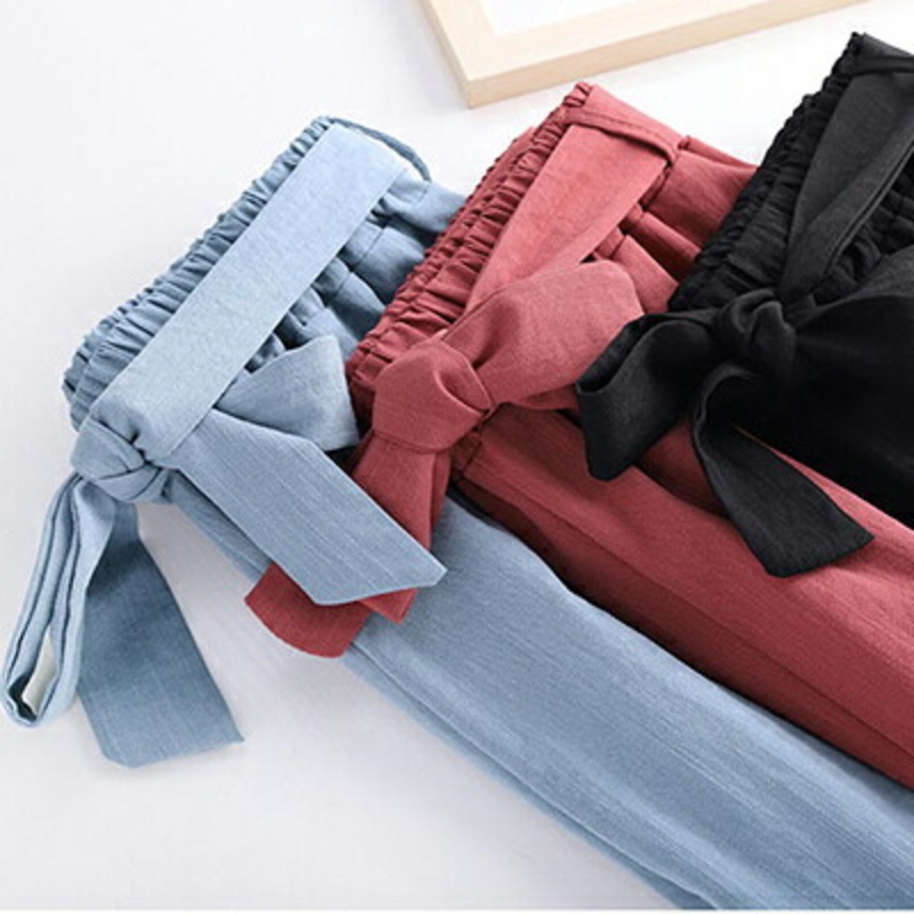 全3色 半端丈 9分丈 ゆったり 体型カバー ナチュラルパンツ レディース おしゃれ カジュアル ロング丈 ウエストリボン ワイドパンツ ワイドレッグ ストレート シンプル 定番 着回し 通勤 女子会 デート きれいめ フェミニン リラックス ブラック 黒 赤 青 春 夏 秋 20代 30代 40代 50代