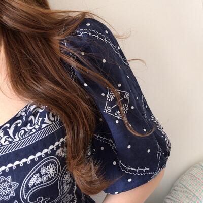 バンダナ柄が可愛いパフスリーブワンピース。