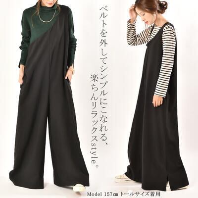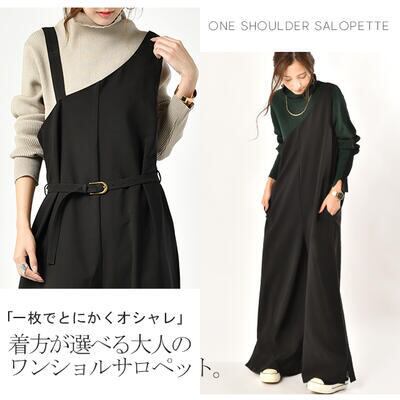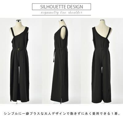 サロペット オールインワン レディース パンツ カジュアル おしゃれ 体型カバー オーバーオール ワイドレッグ ゆったり ルーズ ロング丈 シンプル かっこいい ワンショルダー ブラック 黒 オールシーズン 春 夏 秋 冬 20代 30代 40代 50代