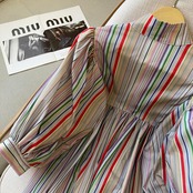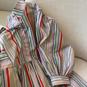レインボーカラーのストライプ柄が華やかなワンピース。