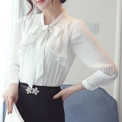 袖のプリーツがポイントのシフォンブラウスです。