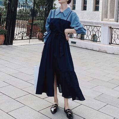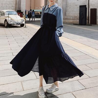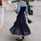 大きいサイズ ティアード ワンピース レイヤード風 バイカラー 袖あり きれいめ カジュアル ロング丈 おしゃれ レディース 可愛い フェミニン 長袖 ウエストリボン 切り替え ワンピ ドレス エレガント ハイウエスト 春 秋 冬 20代 30代 40代 50代