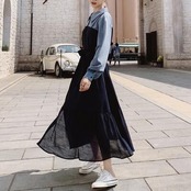 歩くたびに揺れる裾が軽やかでフェミニンな雰囲気。