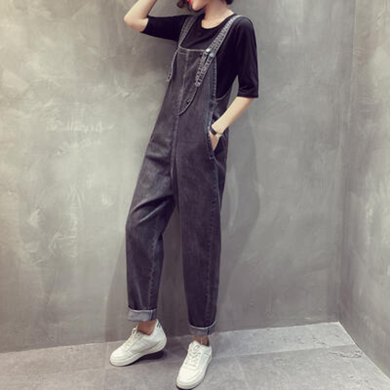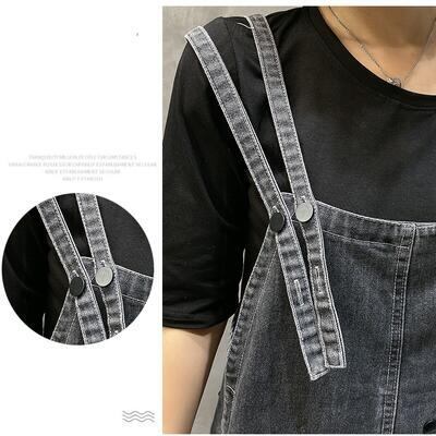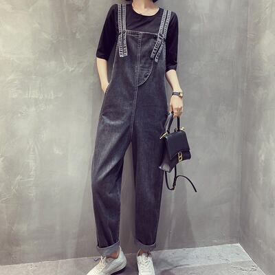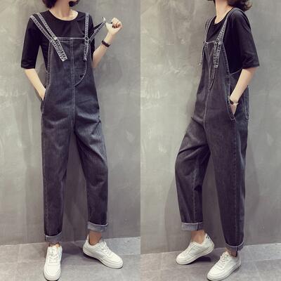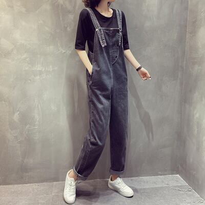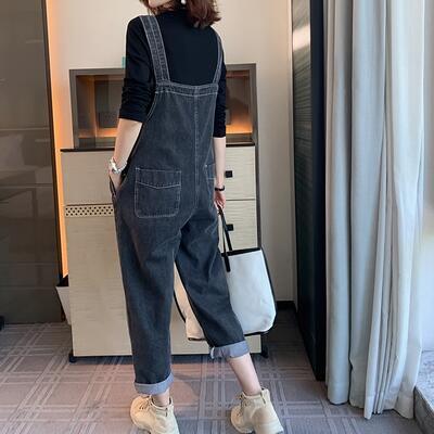 大きいサイズサロペット デニム オールインワン レディース パンツ カジュアル おしゃれ 体型カバー オーバーオール ゆったり ロング丈 シンプル かっこいい リラックス ストリート ブラック 黒 オールシーズン 春 夏 秋 冬 20代 30代 40代 50代