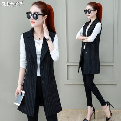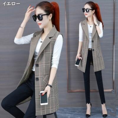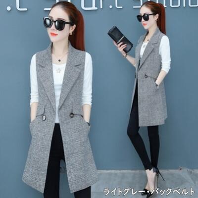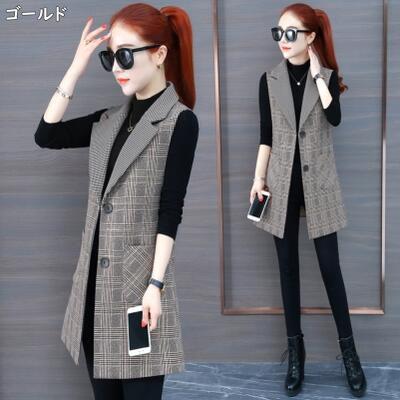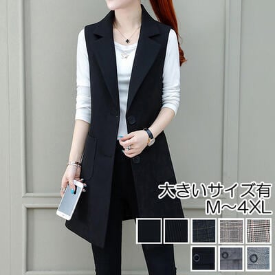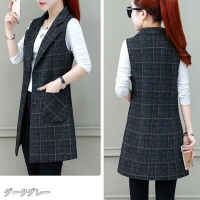 全2種7色 アウター トップス レディース ベスト ジャケット ノースリーブ ジレ チェック きれいめ カジュアル 羽織 おしゃれ マニッシュ かっこいい テーラード 体型カバー シンプル 大きいサイズ ブラック 黒 グレー 秋 春 冬 20代 30代 40代 50代