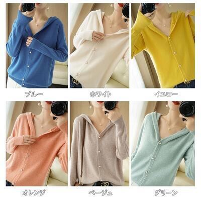 全6色 大きいサイズトップス レディース カーディガン ニット フード付き きれいめ カジュアル 長袖 羽織 ウール混 おしゃれ 可愛い フェミニン フーディー 体型カバー ブルー ホワイト ベージュ オレンジ グリーン イエロー 秋 春 冬 20代 30代 40代 50代