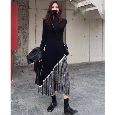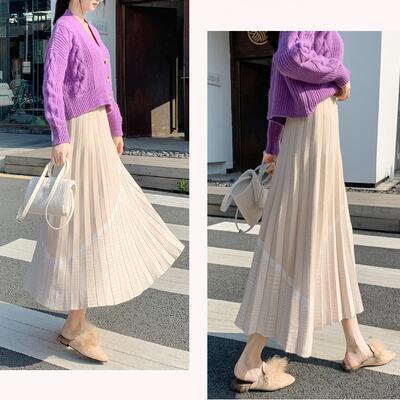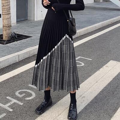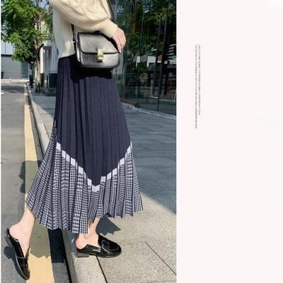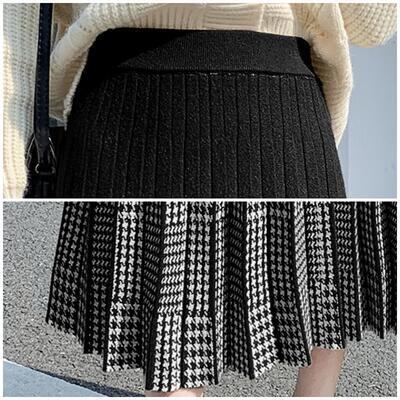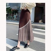 全4色 大きいサイズスカート レディース ニット きれいめ おしゃれ 可愛い ミモレ丈 千鳥格子 プリーツスカート カジュアル 切り替え ナチュラル エレガント フレア フェミニン ウエストゴム グレー ブラック 黒 ベージュ ブラウン 春 秋 冬 20代 30代 40代 50代
