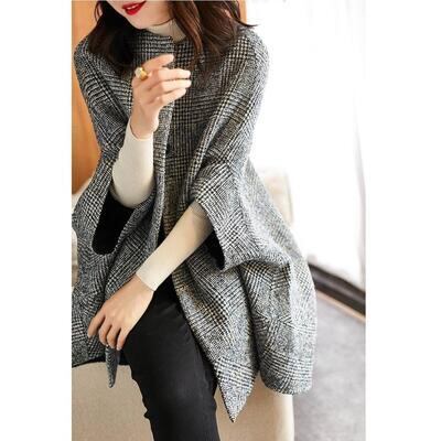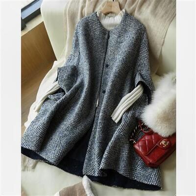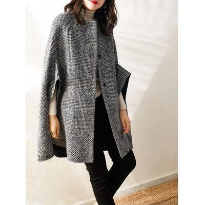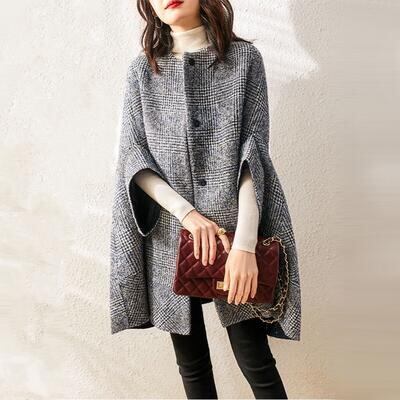 秋 コート ケープ ポンチョ アウター マント レディース ジャケット きれいめ チェック柄 カジュアル 七分袖 羽織 おしゃれ 可愛い シンプル フェミニン ゆったり 体型カバー かっこいい グレー 春 秋 冬 20代 30代 40代 50代